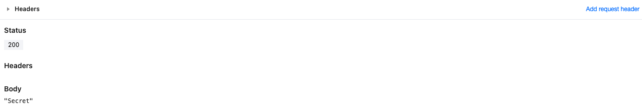 The semantic summary of the above code is to obtain the environment variable that the function has created and deployed, and respond it to the client as Body "Secret".