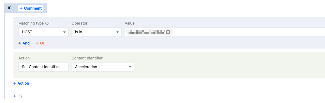 2. In the rule engine, map and associate the domain names and content identifiers by department. For the association method, please refer to configure content identifier. This method implements cost allocation for content identifiers and domain names simultaneously. Example configuration is shown in the figure below: