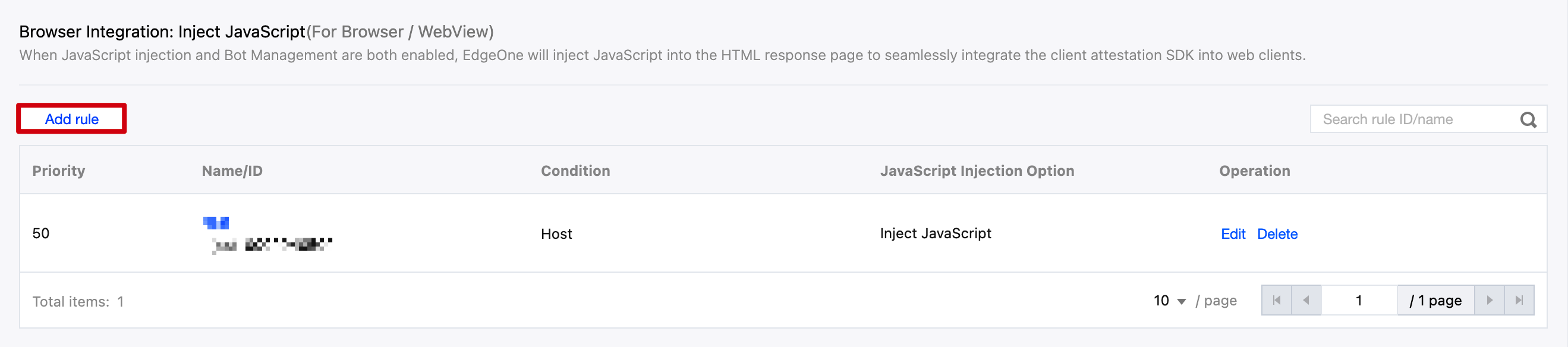 You can use JavaScript injection rules to configure the injection range. By setting rule priority and match conditions, you can specify EdgeOne to inject JavaScript code fragments into specific resources or skip injection to satisfy both the best access performance and attestation effect at the same time.