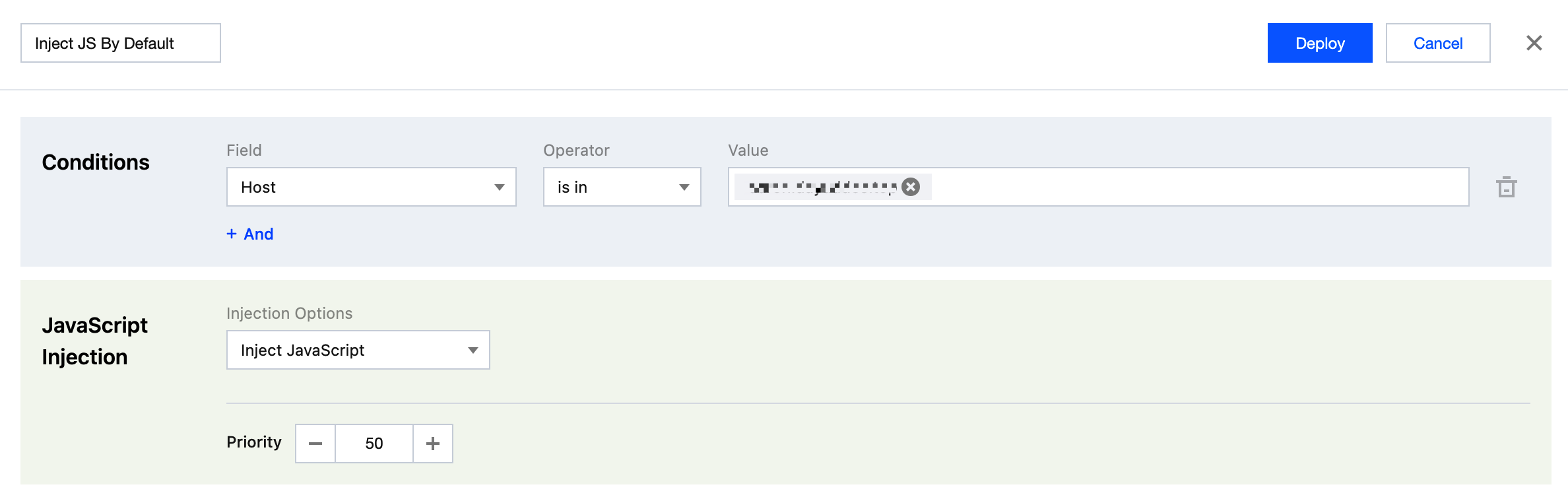 When configuring rules, you can specify conditions such as domain name (Host), URL path, and request method. For example, it can take effect only for a certain second-level domain or target a specific path (such as /checkout). In addition, you can match cookies or request headers as needed for high flexibility. Script injection is performed only when the request matches all conditions set.
