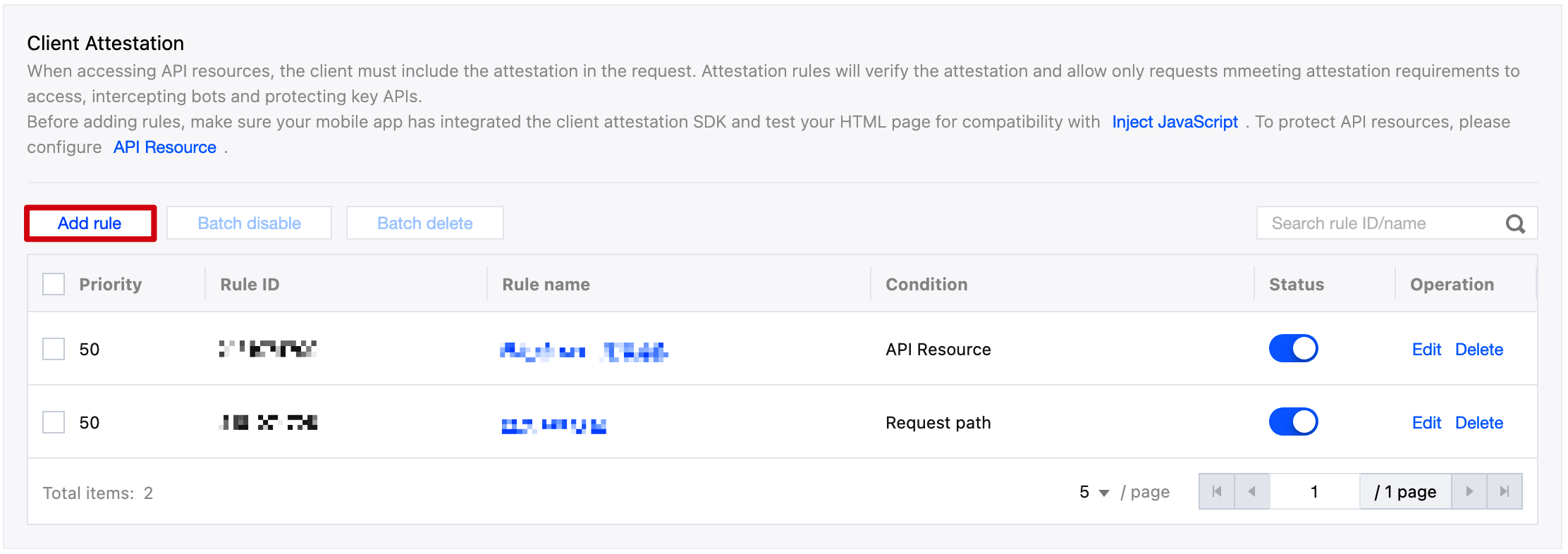 EdgeOne's client attestation rules are configured in the Web protection under the Bot management module. Each rule includes the following parts: