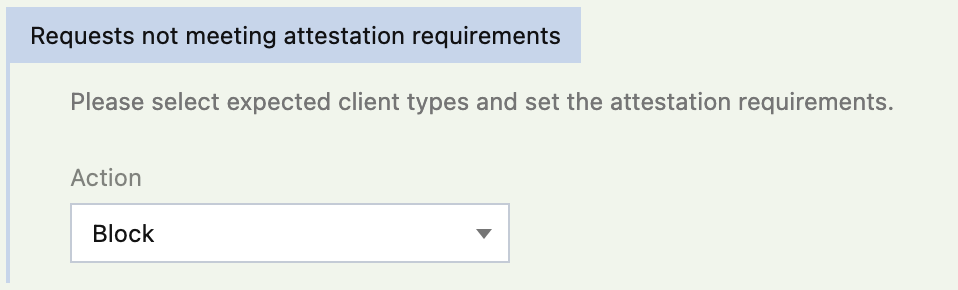 Device attestation policy: Configure attestation requirements and handling methods for different types of client requests.