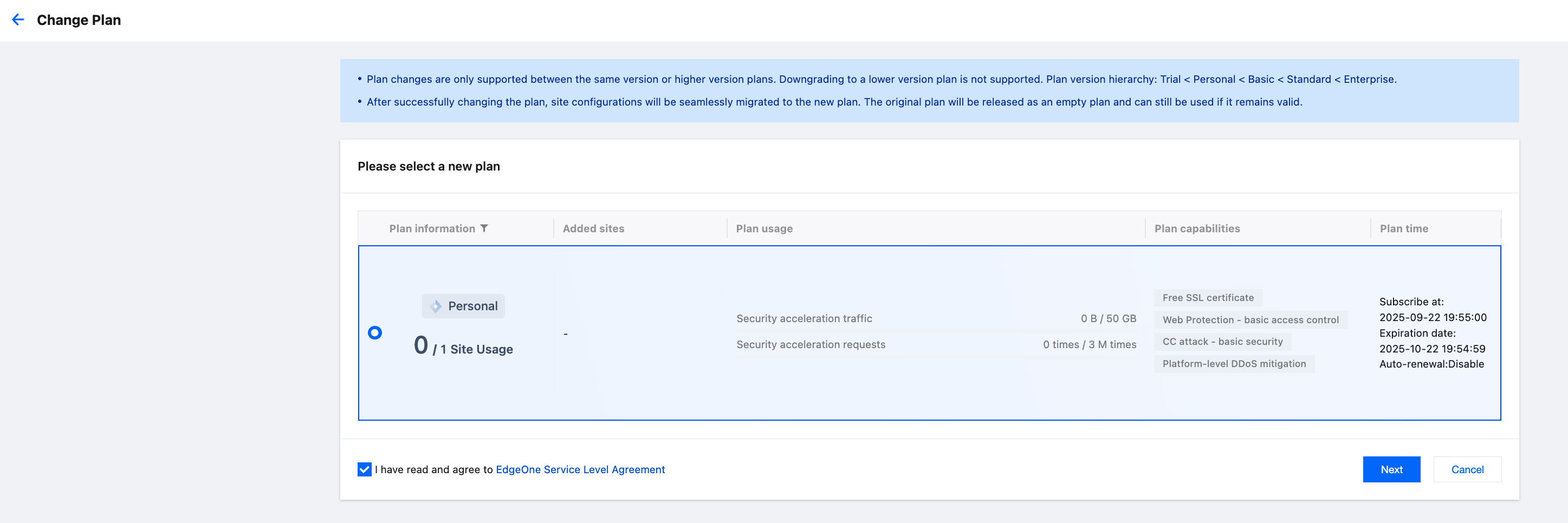 2. Enter the package selection page. The page will display ALL available packages for rebinding. Select the package you need and agree to the service agreement.