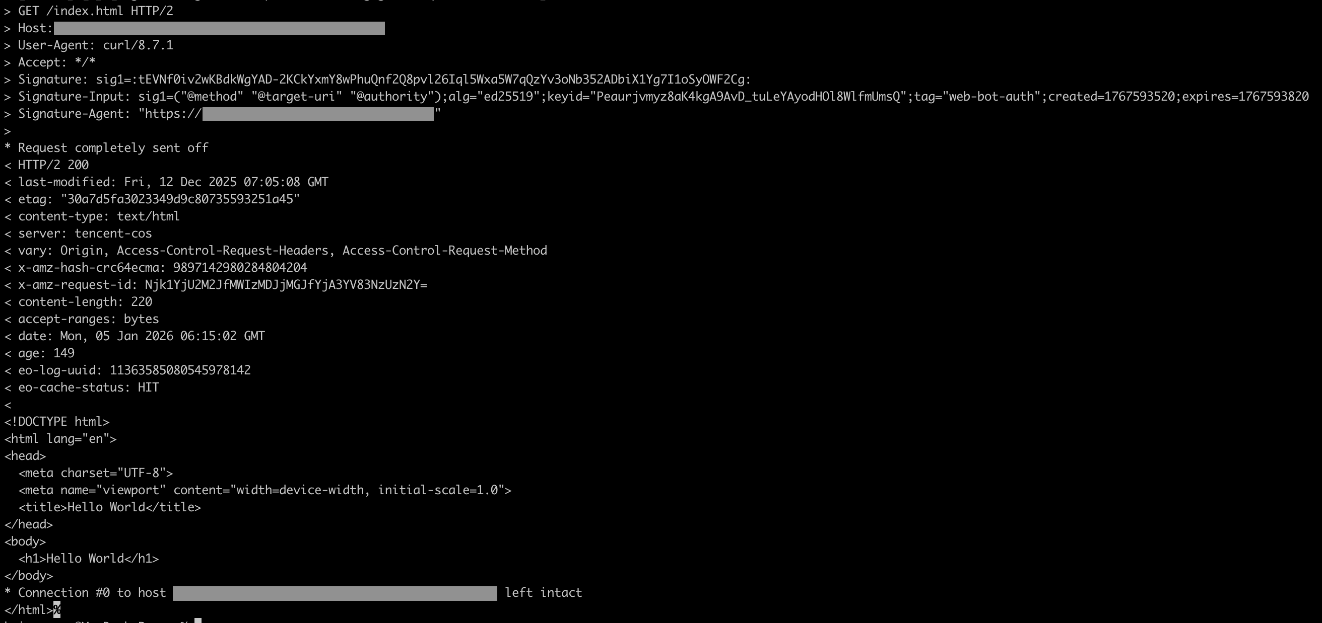 Web Bot Auth is an HTTP Message Signature-based Agent identity authentication mechanism that allows Agents to digitally sign to certify their identity. The server authenticates the Agent identity based on the signature information carried in the request. This example provides a solution for deploying Web Bot Auth authentication in edge functions, strictly adhering to relevant IETF draft standards.