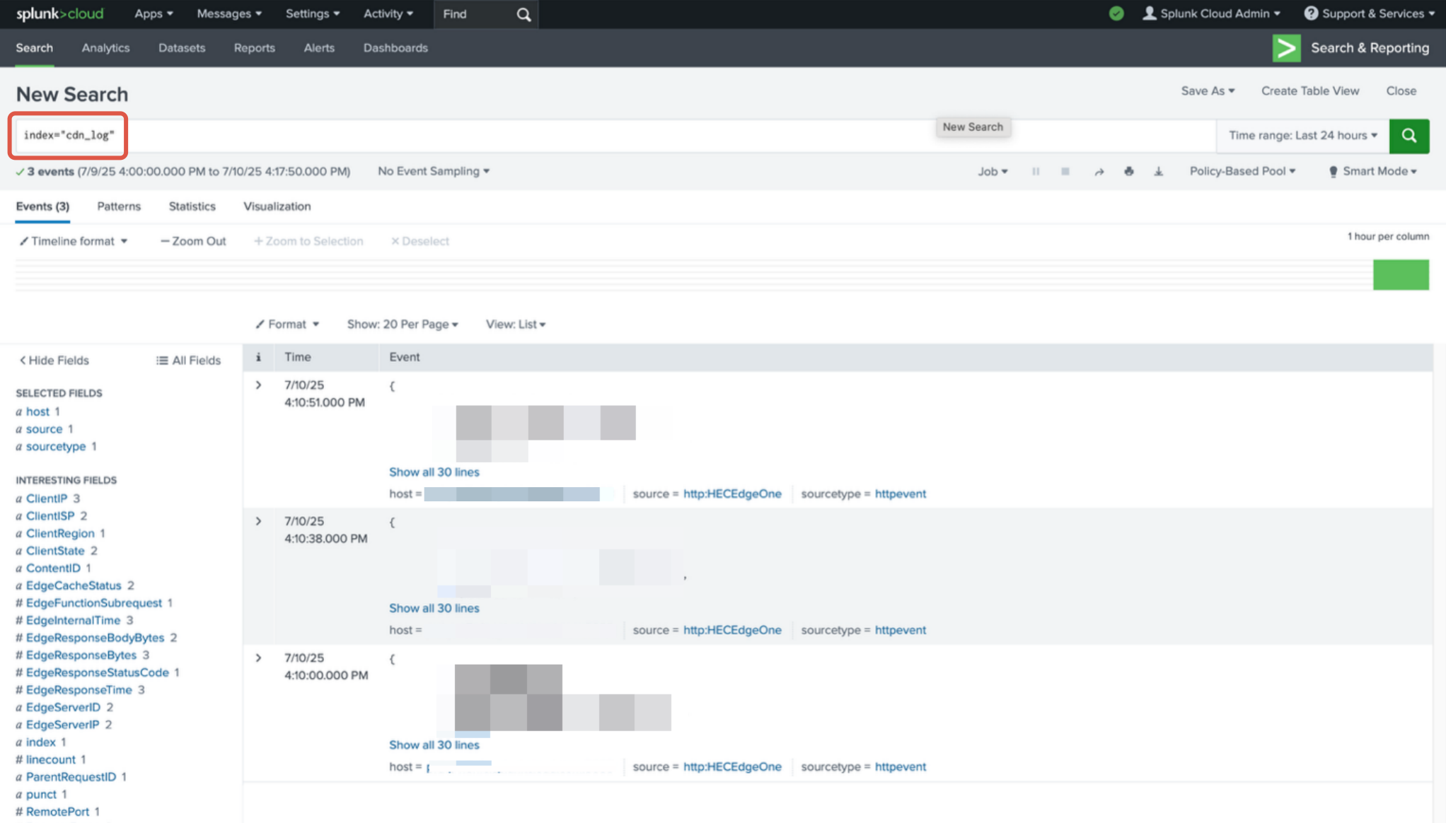 在 Splunk 日志资源管理器中查看 EdgeOne 实时日志是否成功送达。