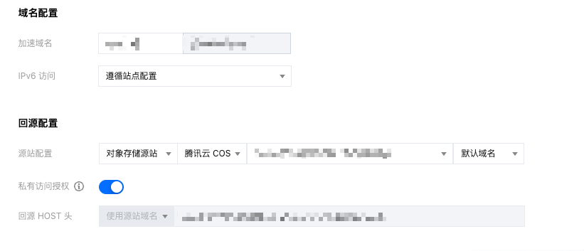 针对同账号下的腾讯云 COS 源站,回源配置可参考如下配置: