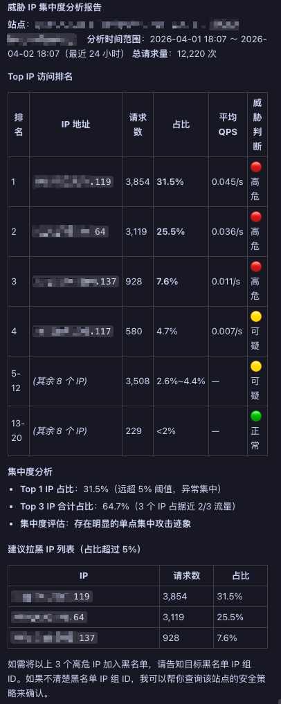 安全周报生成、模板覆盖盘查、域名黑名单 IP 组识别、威胁 IP 自动拉黑等